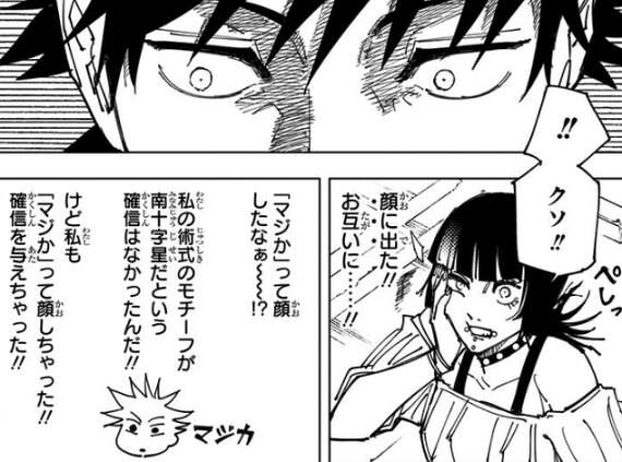 伏黒は星綺羅羅の術式のタネは星座だと推測します。またモチーフの星座も星綺羅羅にハッタリをかますことで、“南十字星”だと確信します。