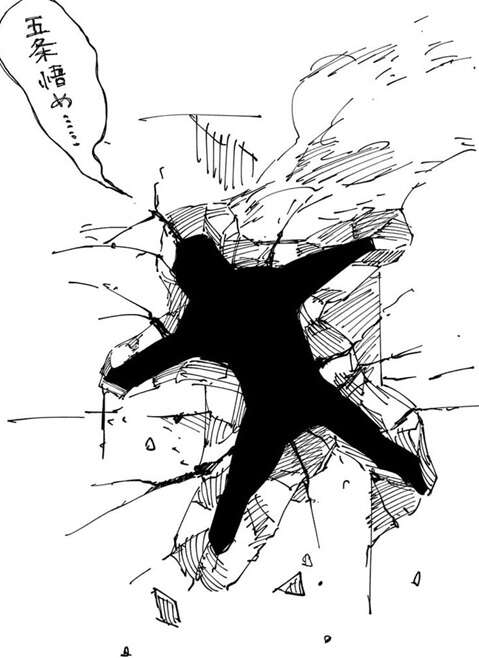 第221話で復活した五条に挑んで吹っ飛ばされた裏梅です。裏梅がギャグマンガみたいにビルにめり込んでいますが、一応死んでいません。