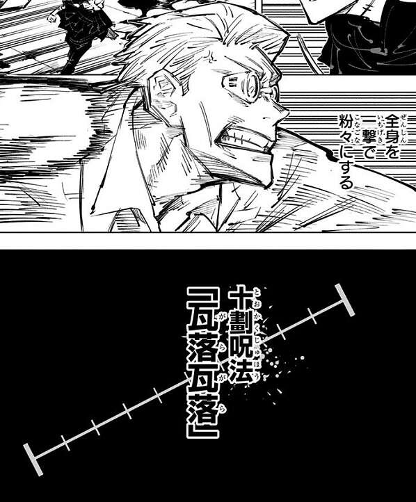 真人に深手を負わされた七海ですが、時間外労働となり時間による“縛り”がなくなると呪力が増していき、さらに破壊した対象に呪力を籠める拡張術式「瓦落瓦落(がらがら)」を使用して、真人を瓦礫の下敷きにしてしまいます。