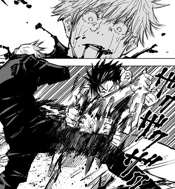 五条が術式を解いた瞬間、伏黒甚爾が背後から現れ五条の腹を刀で刺します。この負傷は致命傷にはならなかったものの、伏黒甚爾は常人離れした速さで五条に近づこうとし、五条は術式順転「蒼」を最大出力で使って伏黒甚爾を近寄らせないようにします。