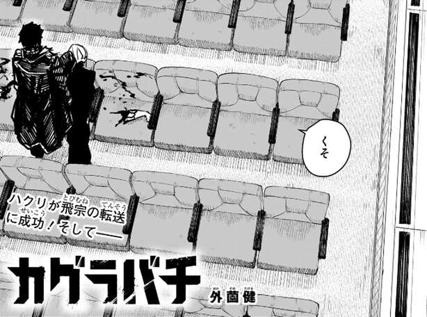 座村は飛宗の能力・鴉(カラス)を使用して敵の妖術師を全て斬ったようで、味方の護衛や巻墨も飛宗の強さに唖然としています。一方、座村は毘灼の幹部がどこへ消えたかを気にしています。