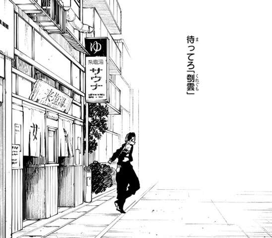 コーヒー牛乳の空き瓶を返却した後、双城は来塩湯を出て心の中で、待ってろ「刳雲」、とつぶやきながら走り出します。