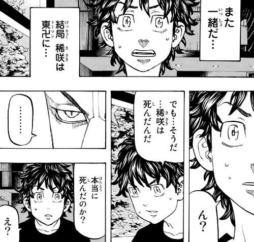 そして一旦は最悪の現代に戻らないと武道は決めていましたが、稀咲の思惑を確認するため再び現代に戻ります。そこで、武道のタイムリープの鍵である直人が稀咲に銃撃されてしまい、タイムリープが今後出来なくなる可能性が出てきます。稀咲は本当にタイムリーパーなのか、今後の展開に期待です。