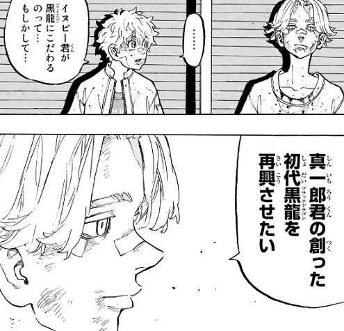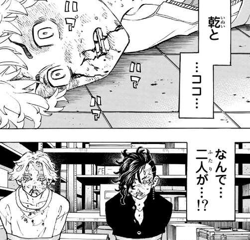 結局、ココが自らムーチョの言う通りに従ったおかげで、武道と乾は助かりますがココは天竺に連れ去られてしまいます。乾は十一代目「黒龍」総長継ぐように、ココを救ってくれと武道に懇願します。そして、乾は「黒龍」に復興にこだわる理由が初代総長、真一郎である事を武道に語り始めます。