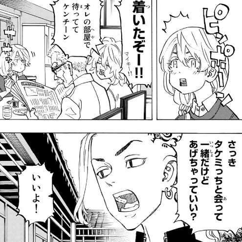 ヒナと話をする事で決意を新たにした武道はマイキーの闇落ちを加速させているのは、黒川イザナが原因と考え、稀咲よりも黒川イザナの事を調べ始めます。マイキーに直接、黒川イザナの事を質問するためマイキーの家に行きますが、そこで黒川イザナは真一郎と繋がっているかもしれないと武道は知らされます。