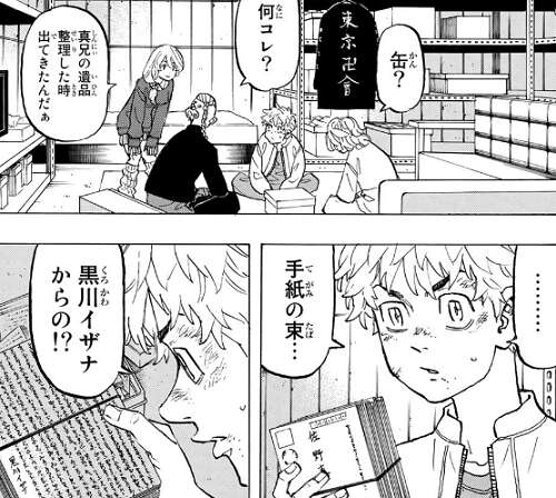 マイキーの妹、エマから黒川イザナはマイキーやエマの兄弟だと教えられ、さらに黒川イザナは真一郎と仲が良かった事実も教えられます。真一郎と黒川イザナは手紙のやり取りをしていて、その手紙の内容をエマから見せてもらえましたが、その内容から見えてきたのは、黒川イザナのマイキーに対する激しい嫉妬、そして恨みでした。