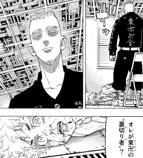 壱番隊と一緒に行動することに決めた直後に、武道は伍番隊の隊長、ムーチョこと武藤泰宏にボコボコにされ拉致されてしまいます。意識を取り戻した武道ですが、何故か乾とココとまでが一緒に監禁されているのを見て、状況が理解できず混乱します。そんな武道に乾は黒川イザナとムーチョの関係を知らされます。