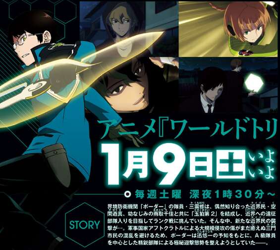 ワールドトリガーのアニメ新シーズンの放送開始日が決定しました。アニメ「 ワールドトリガー 」2ndシーズンとして、2021年1月9日(土)からテレビ朝日系列にて毎週土曜深夜1時30分~「NUMAnimation」枠で放送されました。1月9日から2ndシーズン放送開始が決定したので、どんな内容になるか予想したいと思います。原作のネタバレがあるので、注意して下さい。