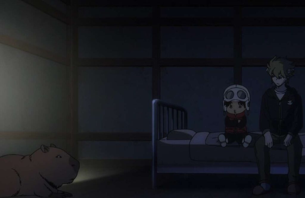 ヒュースが部屋で一人、ガロプラとロドクルーンがミデンに接近していることを確認しています。その後、陽太郎が部屋を訪ねて来てヒュースに、心配するな、いつかちゃんと家に帰れる、とヒュースを励まします。
