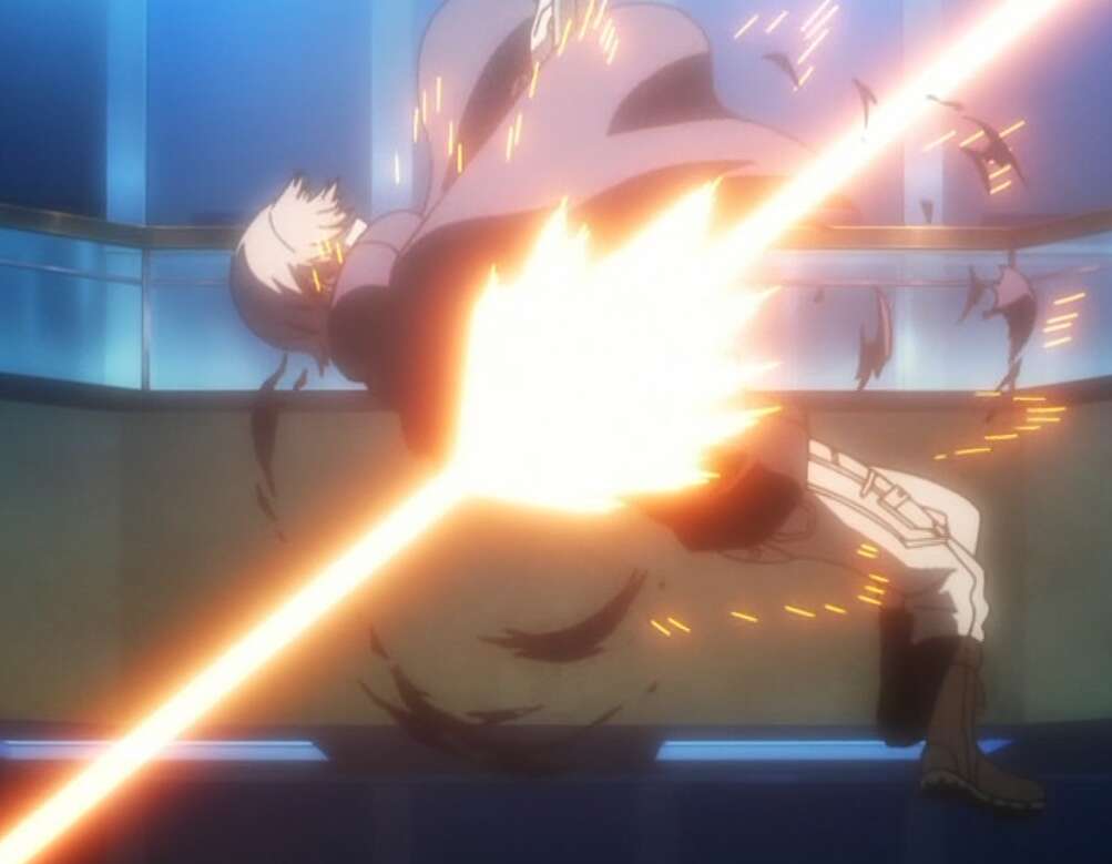 するとヒュースは再びエスクードを使う素振りを見せますが、エスクードは使わず空閑のグラスホッパーで村上に一気に近づき、村上の体に触って村上からエスクードを生やして、来馬を吹っ飛ばします。吹っ飛ばされた来馬を三雲がアステロイドで攻撃します。三雲は来馬に止めを刺そうとしますが、村上のスラスターに防がれてしまいます。