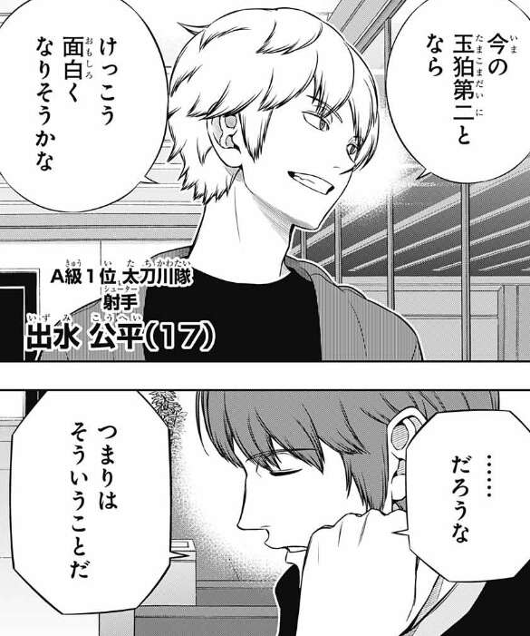 二宮は前回の対戦前 ROUND3を見た後は、玉狛第2の評価をボロクソに言っていましたが、もし最終ROUND8で当たることになれば、けっこうおもしろくなりそうと考えていそうです。