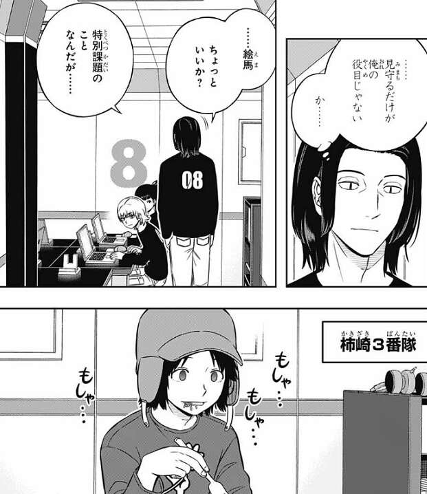 一方、柿崎3番隊は仲が元々悪かった犬飼と影浦が言い合いをし、その影響で別役がすっかり落ち込んでしまっています。柿崎はこの隊を上手く、取りまとめることが出来るでしょうか?