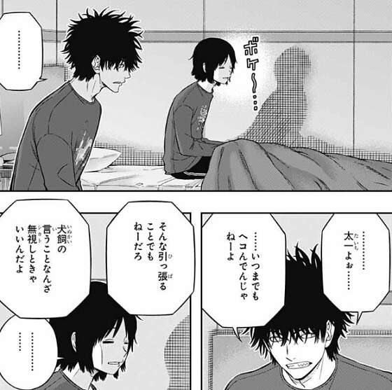 しかし別役は、おれアホなんで寝たら大体忘れるんで、と言った後、今日はカゲさんが味方してくれてうれしかった、と別役は影浦にお礼を言います。影浦は、やる前から『おめーには無理だ』って言われてムカつかねえヤツはいねーだろ、別におめーに限った話じゃない、と言いますが、それでもありがたかったっすよ、と別役は答えます。