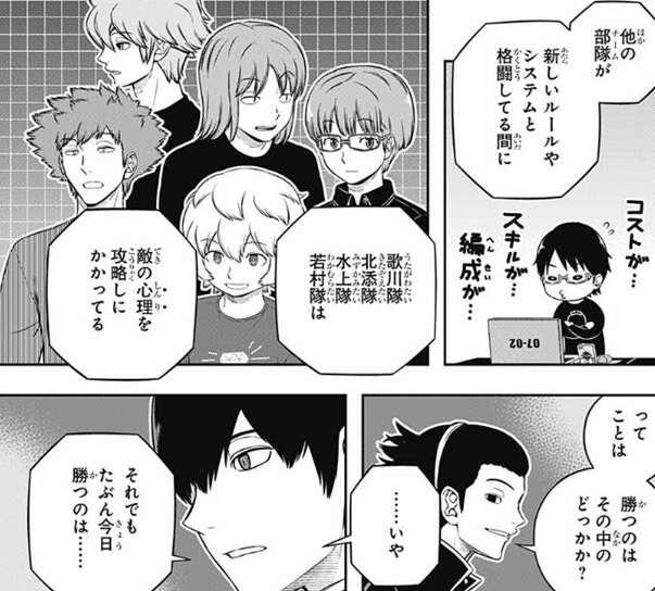 以上から推測すると、諏訪隊か歌川隊のどちらかがトップ、若村隊が次点で北添隊と水上隊の順位が続く、というような順位が予想されますが、実際の順位は243話で発表されると思うので、早くどんな順位か知りたいですね。