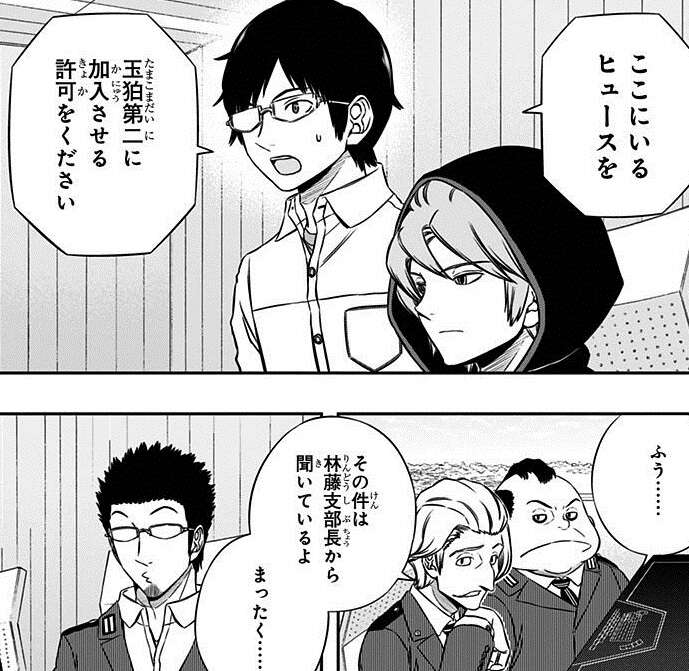 駆け引きの結果、ヒュースの入隊を許可されましたが、その代わりとして雨取を遠征に借り受ける事を提案されます。