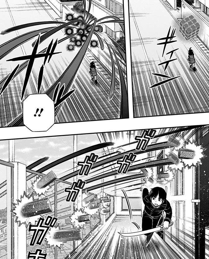 生駒隊は空閑を倒そうとしますが、空閑はワイヤーを上手く使って生駒の攻撃をかわします。その乱戦のなか、生駒隊の水上が王子に落とされます。